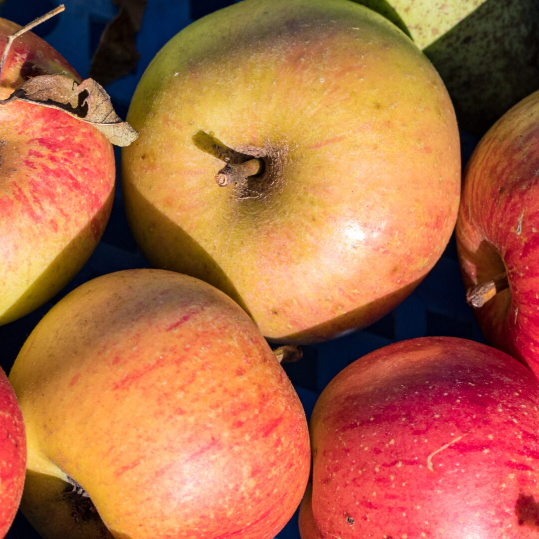 Ananasrenette (Rheinland, um 1820): Dieser Apfel ist eine saftige und aromatische Spitzensorte. Verwendung: als Tafelsorte, in der Küche und zum Entsaften.