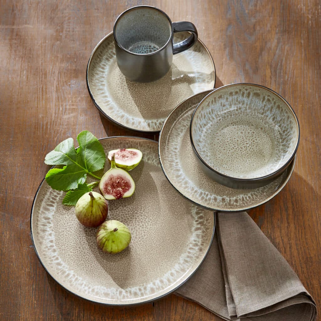 Dieses rustikale, dickwandige Geschirr zeichnet sich durch warme Glasuren und eine handwerkliche Ausstrahlung aus. Es bringt Wärme und Authentizität auf den Tisch – besonders schön in Kombination mit Leinen oder Holz im Hygge-Stil.
