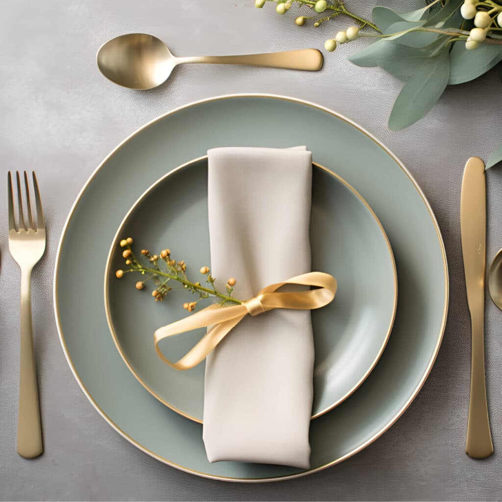 Goldene Akzente – sei es durch goldenes Besteck, Kerzenhalter oder filigrane Glasdetails – setzen luxuriöse Highlights. Besonders wirkungsvoll ist die Kombination von Metalltönen mit zurückhaltenden Naturstoffen, etwa Leinen- oder Baumwolltischdecken.