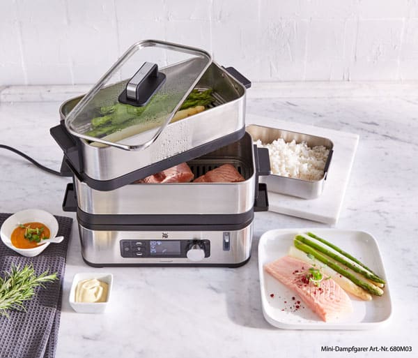 Beim Dämpfen im Dampfgarer sind größere Fischstücke in 12 bis 15 Minuten fertig gegart. Ebenso gut gelingt das Dämpfen in einer geschlossenen Kasserolle auf einem Gemüsebett oder in einem um den Fisch verschlossenen, gefetteten Pergamentpapier im Backofen bei 180 °C.