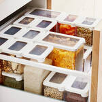 Dank dieser transparenten Behälter haben Sie jetzt alle Vorräte ständig im Blick. Lebensmittelgerechte Spezialdichtungen in den luft- und wasserdicht schließenden, ebenfalls transparenten Deckeln bewahren appetitliche Frische. Untereinander stapelbar, alle Maße auf handelsübliche Packungsgrößen sowie auf Küchenschrank-, Schubladen-, Kühlschrankmaße abgestimmt.