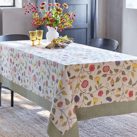 Gewebt wird diese Edel-Tischwäsche aus reinen Naturfasern vom schwedischen Hoflieferanten Ekelund. Die von Ekelund entwickelte, innovative und patentierte Webtechnik erlaubt es, detailreiche Bilder höchster Farbbrillanz aus nur 3 Grundfarben zu weben. Das blumige Dekor der Designerin Ulla Gustavson erstrahlt auf dieser Tischwäsche in seiner ganzen sommerlichen Pracht. Der überragenden Hand-werkskunst des ältesten familiengeführten Textilunternehmens der Welt (Gründungsjahr 1692) vertrauen neben dem schwedischen Königshaus auch der Kreml sowie Japans Kaiser Akihito. Hochwertigste Baumwollgarne schwerer Qualität. Mit 320 g/m² ist die Tischwäsche etwa 50 % stärker und damit dauerhafter als üblich, Maschinenwäsche 60 °C.
