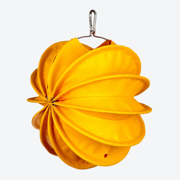 Die meisten Gartenlaternen machen nach einer Saison schlapp. Dieser robuste High Tech Lampion hat den Wetterhärtetest im hohen Norden mit Bravour bestanden und wird Sie lange Jahre begleiten. Rund ums Jahr leuchtet er stimmungsvoll und trotzt allen Wetterlagen, Feuchtigkeit, Temperaturen von -30 °C bis +70 °C und UV-Strahlung. Sein Geheimnis: Die leinenartig geprägte Markisenfolie (375 g/qm) mit spezieller Oberflächenversiegelung wird in fächerartige Felder formgeschnitten und einzeln in Handarbeit versteppt. Innen halten kräftige Edelstahl- und Kunststoff-Stäbe die Struktur stabil in Form. Wetterfeste Edelstahlösen, eine robuste Vertäuung und ein Karabiner geben dem Gartenlampion starken Halt. Der langlebige Lampion läßt sich dekorativ an Bäumen, Gartenhaus oder Pergola aufhängen, er ist pflegeleicht abwaschbar. Eine regelmäßige Pflege verlängert die ohnehin sehr gute Langzeitoptik des Lampenschirms.